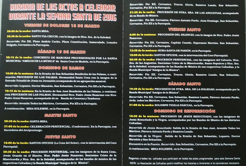 Santa Cruz de Mudela (Ciudad Real) está preparada para celebrar su semana de Pasión que comienza el próximo viernes 18 de marzo con el Vía Crucis de la virgen de la Soledad desde la Iglesia Parroquial a las 20:30 horas.